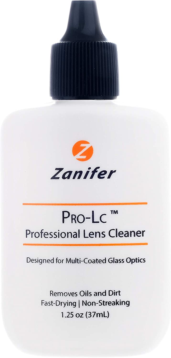 Zanifer's Pro-Lc (Professional Lens Cleaner) is designed to effectively remove oils and dirt from multi-coated glass optics. It's fast drying formulation is non-streaking and works to minimize fogging and static. Pro-Lc is designed to be used with Camera Lenses, Binoculars, Spotting Scopes, Telescopes and More.