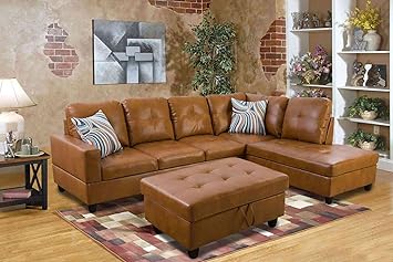 A Ainehome Sectional Sofa Faux Leather Modern L Shaped Couch Set 103.5_‹�Wide Including Chaise and 3 Seating Sofa with Storage Ottoman for Living Room Furniture (Right Hand Facing, A-Ginger)