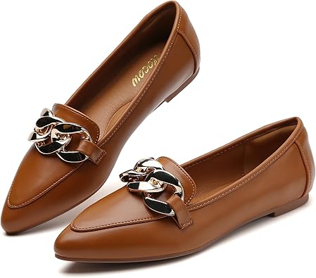 Tilocow Metal Chain Loafers for Womens Slip On Pointed Toe Flats Comfortable Fashion Work Business Shoes