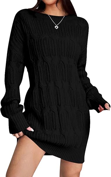 Cakulo Womens 9094 Fall Long Chunky Sweaters Tunic Pullover Knit Sweater Loose Crew Neck Trendy Long Sleeve Tops