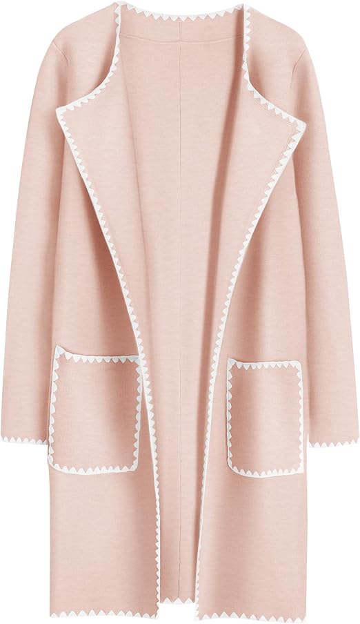 ZESICA Women's Open Front Long Cardigan Sweater Casual Lapel Coatigan Coat 2024 Fall Jacket Outerwear with Pockets