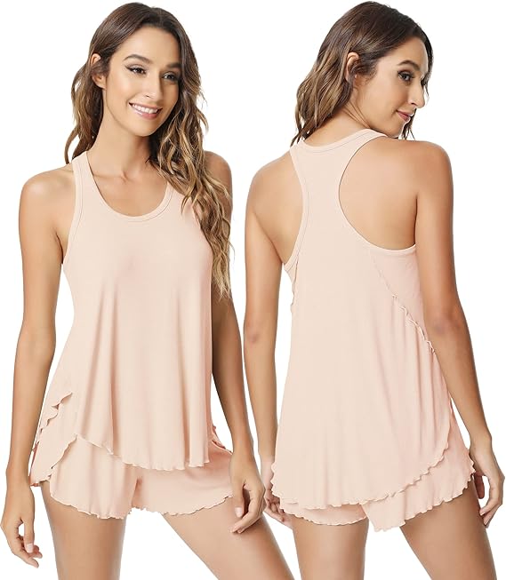 NACHILA Pajamas for Women-Viscose Made from Bamboo, Ribbed Racerback Tank Top and Shorts Pajama Sets Sleeveless Sleep Cami Pj