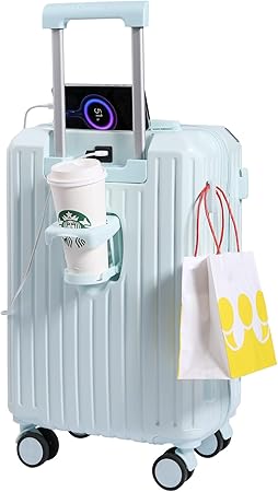 Carry-on Luggage with Cup Holder & USB Charging Port, Hard Side Luggage with Spinner Wheels, Lightweight Luggage for Travel, Business, School (Blue, Carry-On 24-Inch)