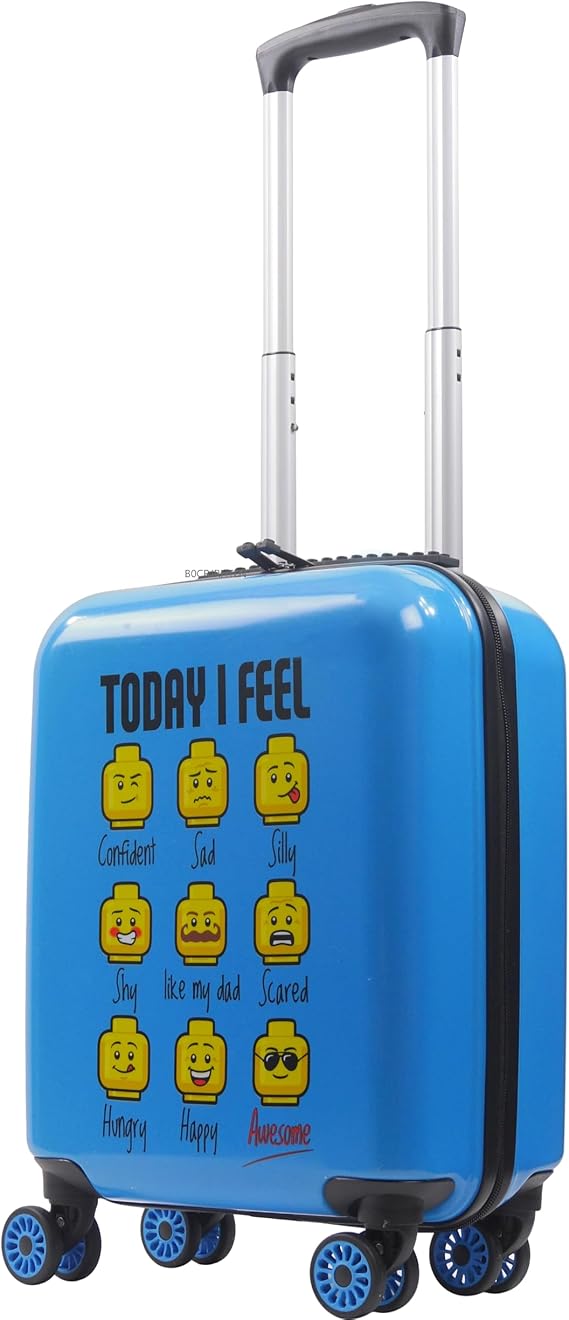 Concept One LEGO 18 Inch Kids Carry On Luggage, Play Date Hardshell Rolling Suitcase with Spinner Wheels, Light Blue