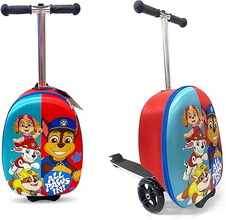Paw Patrol Kids 19_ѝ Suitcase Scooter _ÑÐ Boys Magical Carry-on Luggage with LED Light Up Wheels, Waterproof Hard Shell, Retractable Handle, and Lightweight Foldable Ride-On Travel Bag