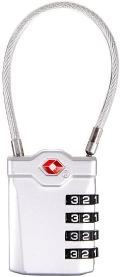 TSA Locks for Luggage 4-Digit CombinationLock with Inspection Indicator, Zinc Alloy, Flexible Cable Lock for Suitcases, Easy to Read, School Locker(SILOVER)