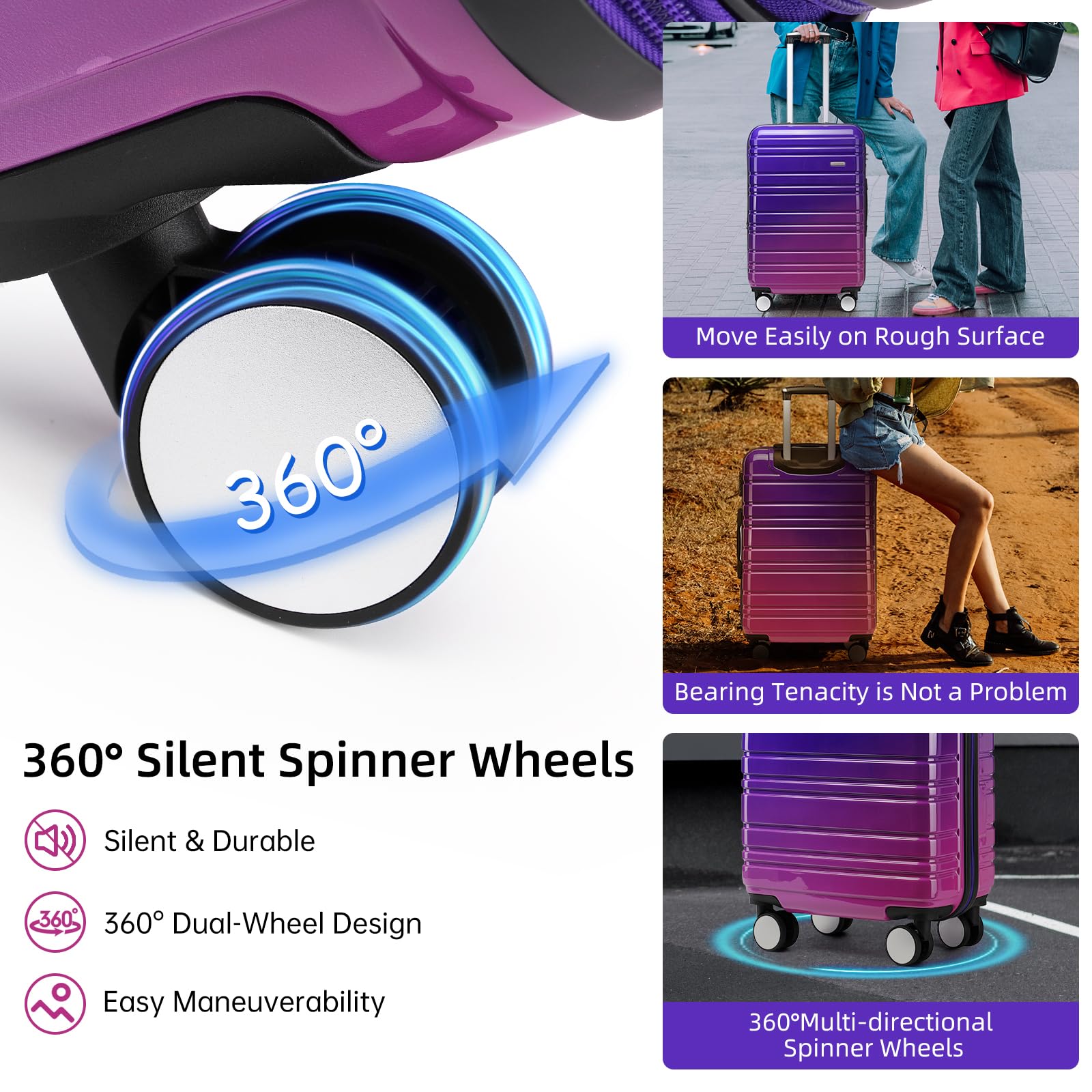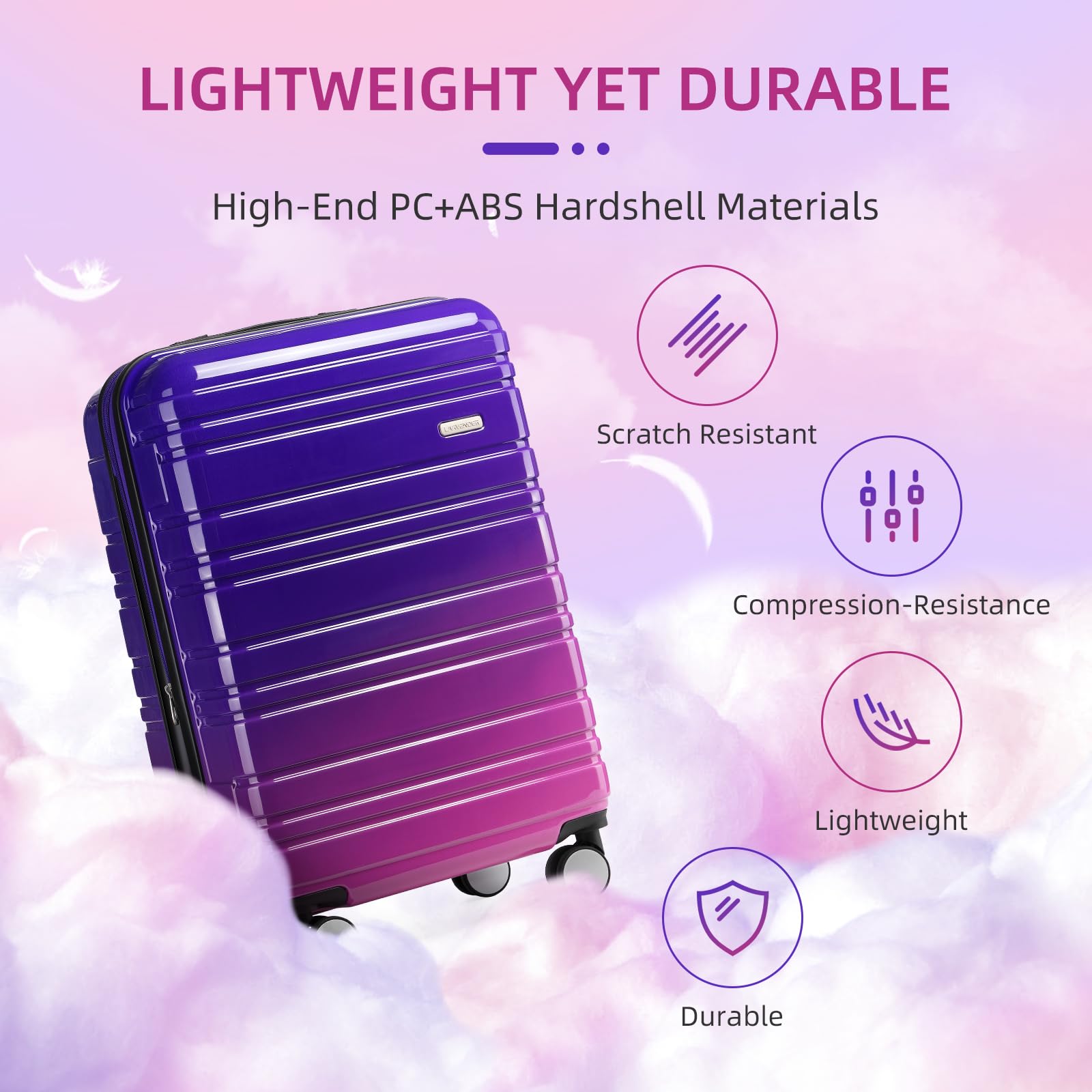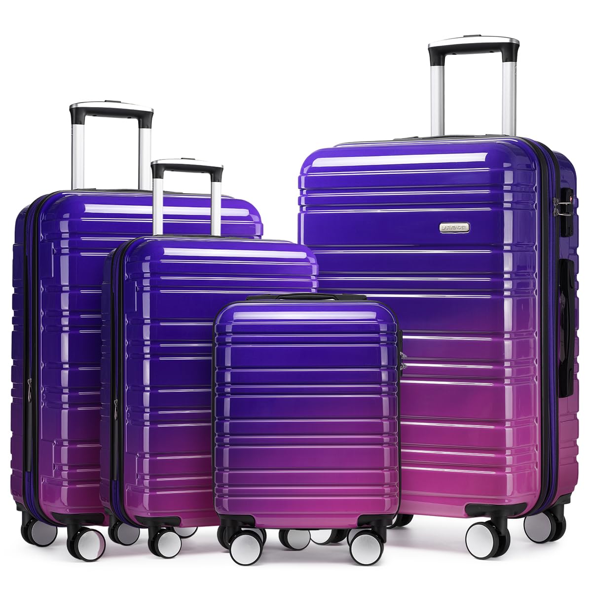 LARVENDER Luggage 4 Piece Sets Expandable PC+ABS Hardside Multicolor Suitcase Sets Double Wheels TSA Lock, Midnight Berry