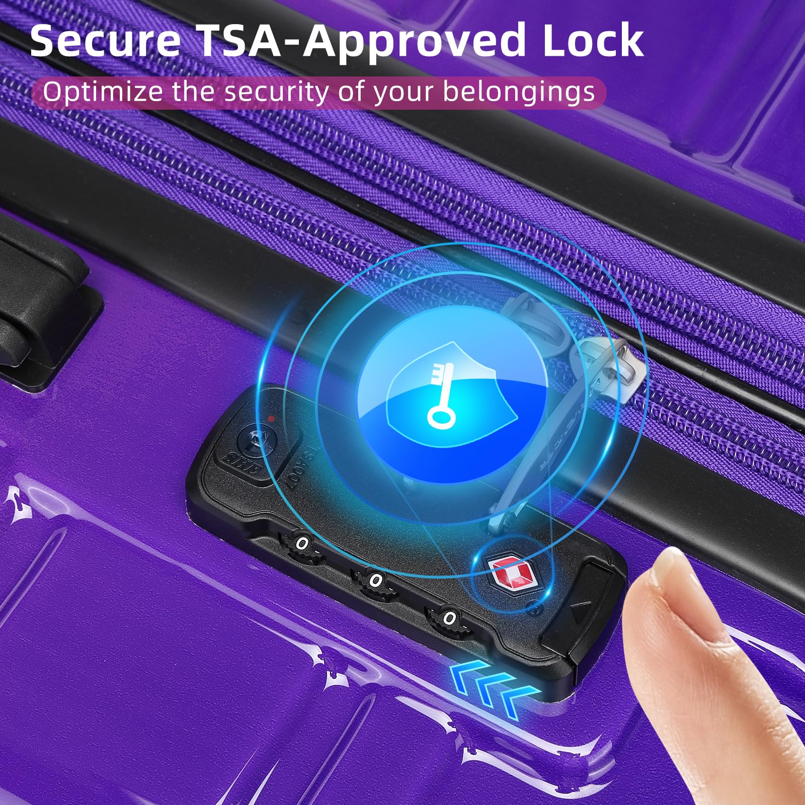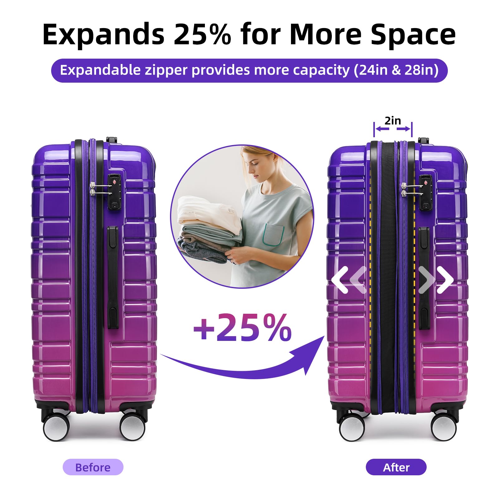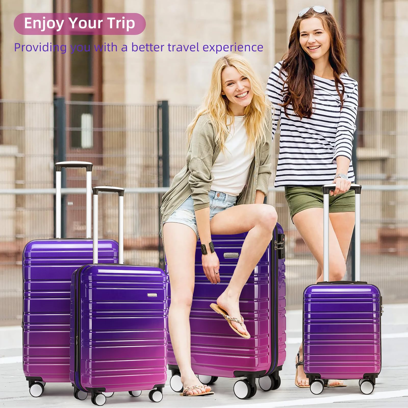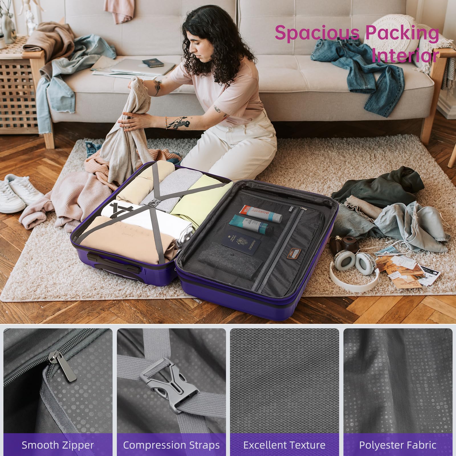 LARVENDER Luggage 4 Piece Sets Expandable PC+ABS Hardside Multicolor Suitcase Sets Double Wheels TSA Lock, Midnight Berry