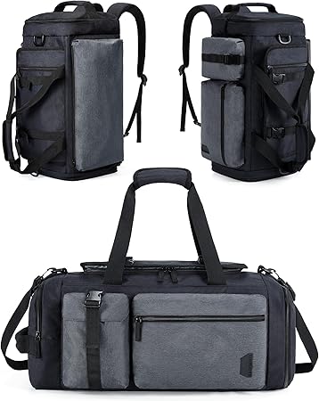 BAGSMART Gym Bag for Men, Sports Duffel Bags for Traveling, Weekender Overnight Bag with Shoe Laptop Compartment, Carry on Backpack for Airplanes-Black-gray