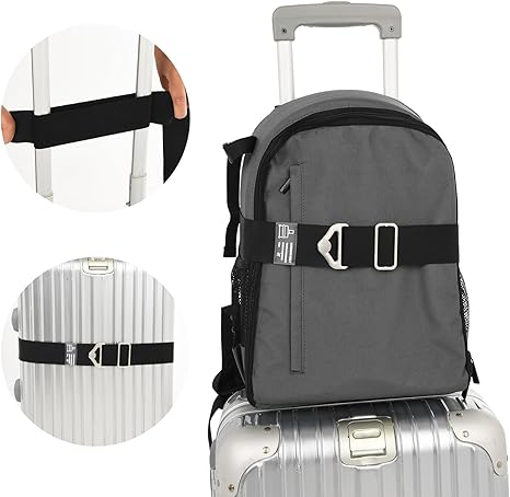 2-in-1 Travel Belt for Luggage Straps Over Handle for Add a Bag, Adjustable Travel Luggage Belt Strap with Alloy Buckle Elastic Belt for Carry On Bag, Suitcase Strap Travel Accessories(Black)