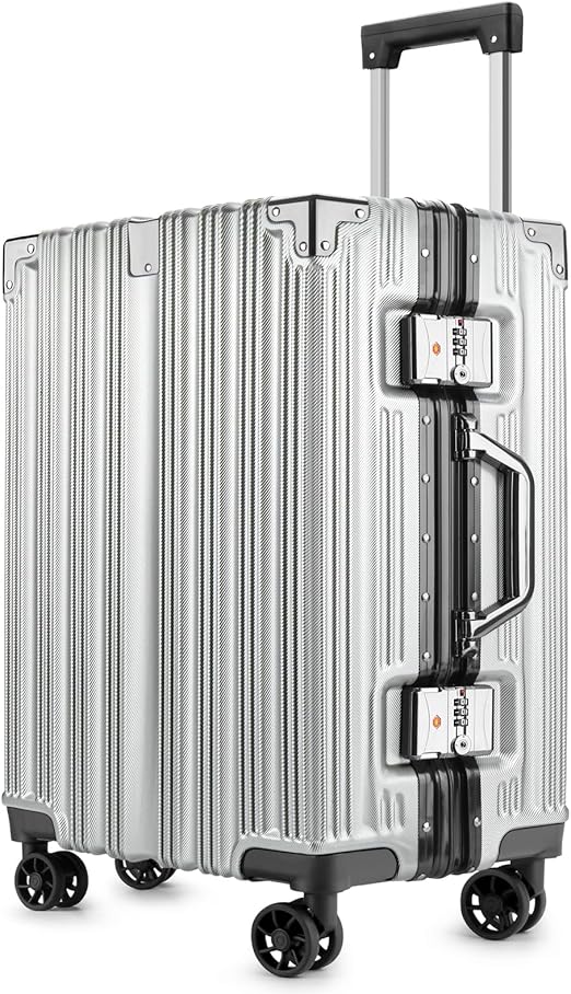 hard shell Carry On Luggage 22x14x9 Airline Approved, zipperless lightweight Suitcases Aluminum Frame +PC with 360 roller spinner wheels TSA Lock For men women travel - 20 Inch Silver