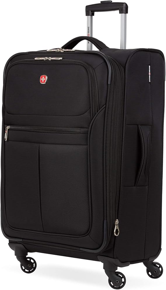 SwissGear 4010 Softside Luggage with Spinner Wheels, Black, Checked-Medium 23-Inch