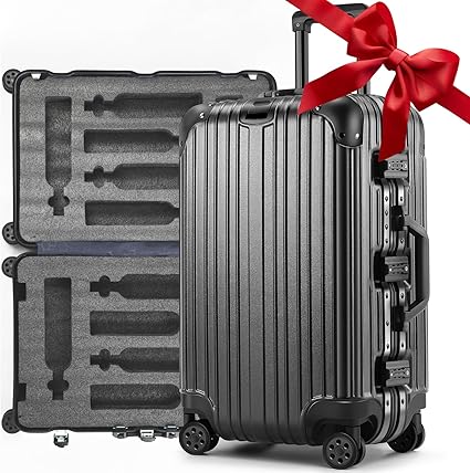 Aluminum Alloy‹ÛÔWine Suitcase, 28in Made Pure PC, 20cm Thick Pearl Cotton, Aluminum Frame And Anti-Collision Edge Wrap, Hold 12 Standard 750ml Wine, 45lb, Air Transportation No Additional Cost, TSA Lock