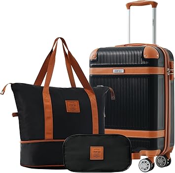 Merax Carry On Luggage Lightweight Suitcase Spinner Wheels, TSA Lock, Black, 20 Inch Set