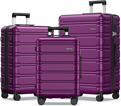 BEOW 3 Piece Luggage Sets For Women with Spinner Wheels, Durable Polycarbonate Hardside Expandable Suitcase Sets 3 Pcs, Stylish Lightweight Travel Luggage with TSA Lock 20 24 28 Inch Purple