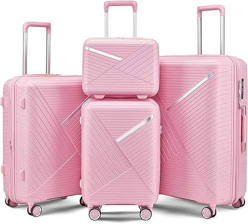 Merax 4-Piece Expandable Luggage Set (14/20/24/28 Inch) Lightweight Hardshell Suitcase with 360Îç Silent Spinner Wheels, TSA Lock, Waterproof for Family Travel (Pink, 4-Piece Set)