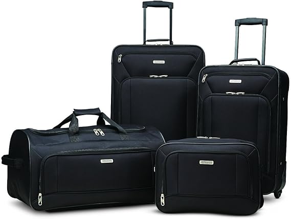 American Tourister Fieldbrook XLT Softside Upright Luggage, Black, 4-Piece Set (BB/WD/21/25 UP)