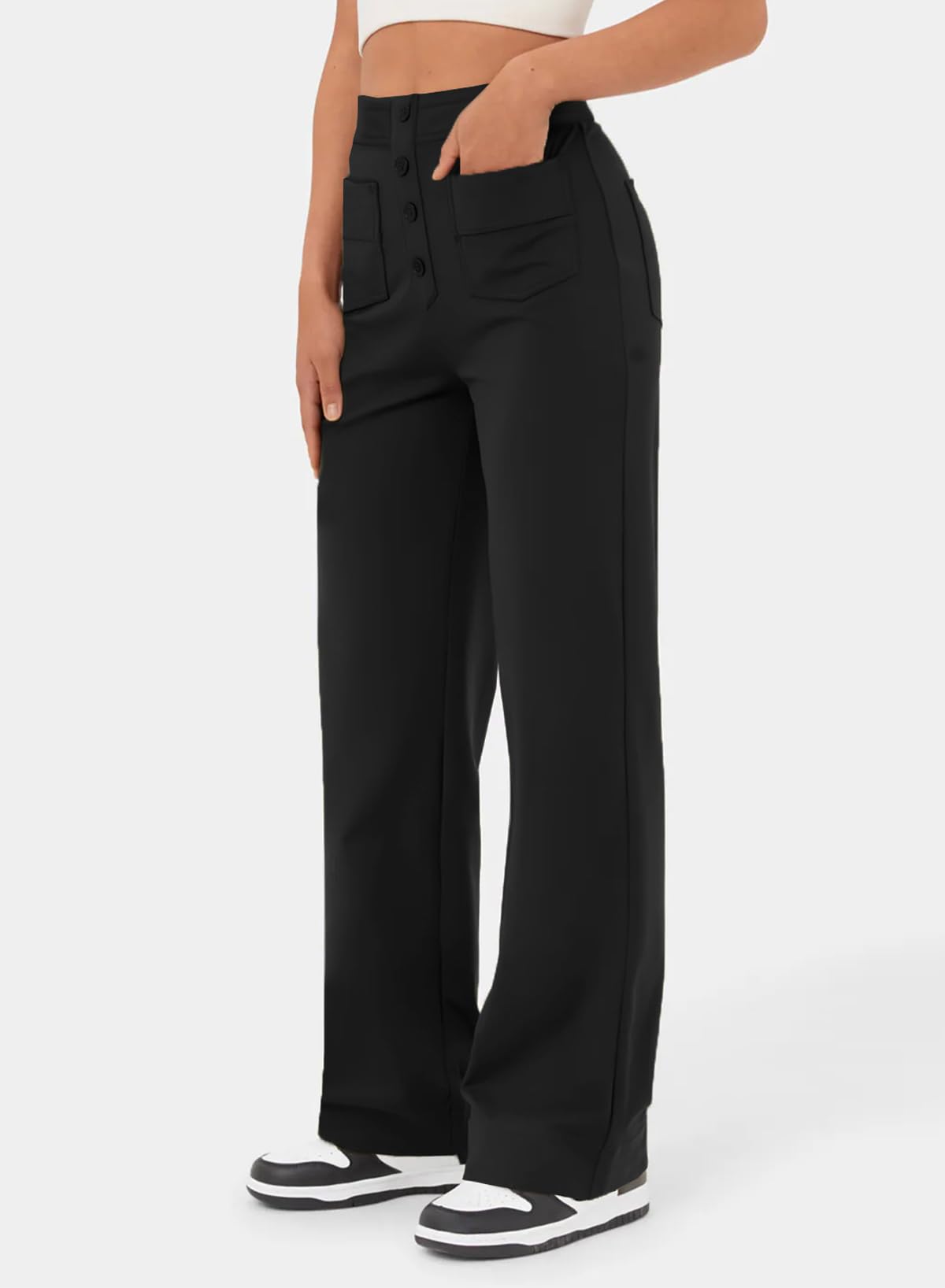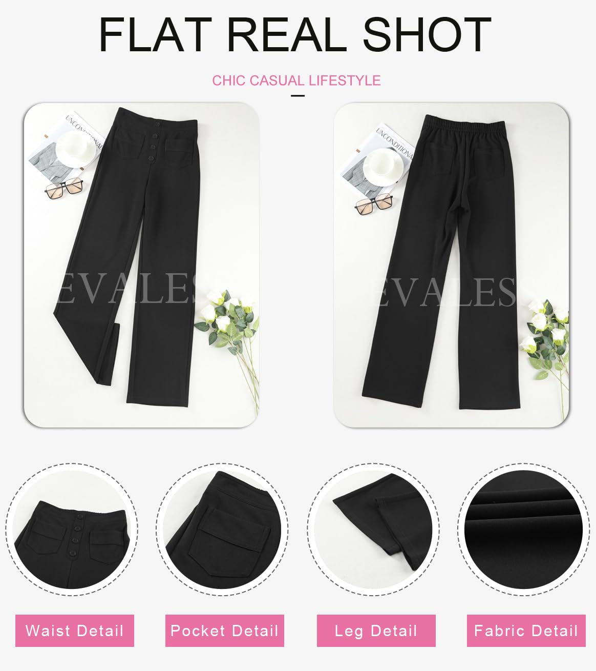 Details: Introducing our Women's Casual Straight Leg Pants - the perfect addition to any wardrobe! These high waisted trousers are designed to provide both comfort and style, making them perfect for any occasion. Made with a stretchy, breathable fabric, these pants are perfect for all-day wear. Featuring a button down front and multiple pockets, these pants are both practical and fashionable. The straight leg design provides a classic look that can be dressed up or down, making them perfect for business or casual wear. The high waisted design flatters your figure and provides a comfortable fit, while the multiple pockets provide ample storage space for your essentials. Pair these pants with a blouse or a casual top for a versatile look that can take you from the office to a night out with ease. Invest in our Women's Casual Straight Leg Pants today and experience the perfect blend of style and comfort!