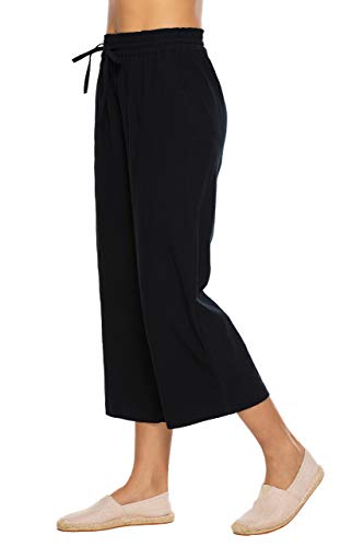 Features: Solid Color, Casual clothes, Wide Leg, Back with elastic waist, Capri Pants