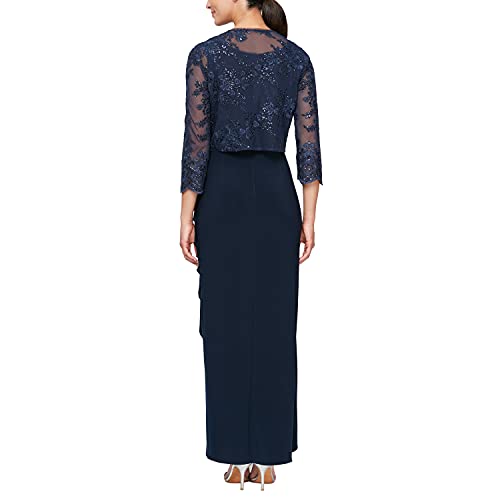 Details: Subtle details shine in the elegant jacket dress. This two piece set features a soft and stretchy lace bodice and bolero jacket with a ruched skirt that covers all the right places. Pair with your favorite silver or nude heels for a stunning head to toe look!