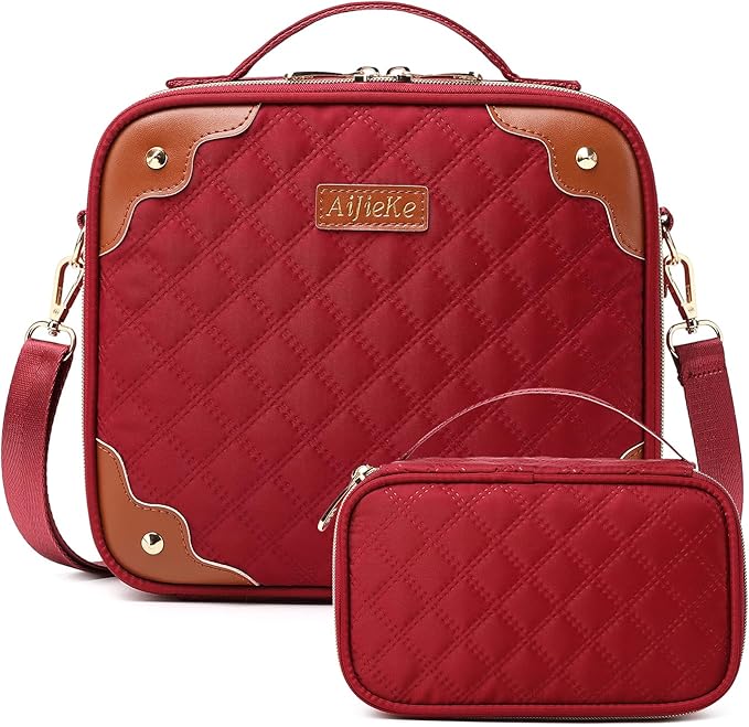 AIJIEKE Travel Makeup Bag, Cosmetic Bag with Small Make Up Organizer Case, Large Makeup Pouch for Women Purse for Cosmetics Accessories Brushes Skincare, Red