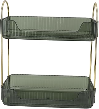 Condemn Double Layer Makeup Stand Modern Light Luxury 2 Tier Makeup Shelf Organizer Brushes Eyeshadow Lotions Lipstick Nail Polish Jewelry White (Green)