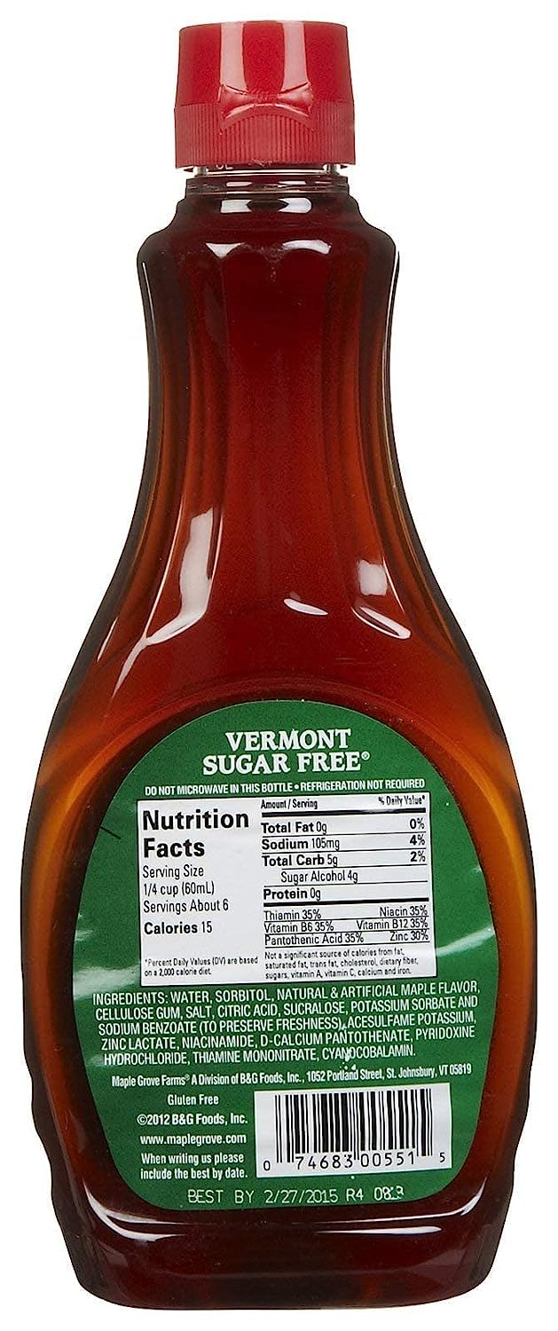 Vermont sugar free, 12-ounces is for people with diabetes and for anyone seeking a sugar free, low-carb syrup. As the world's largest packer of pure maple syrup, Maple Grove Farms has a real knowledge of what maple should taste like. Now sweetened with Splenda? and fortified with 6 vitamins and minerals, we think you'll agree - sugar free doesn't get any better than Maple Grove farms vermont sugar free maple flavored syrup. And it's not just for breakfast-you can cook and bake with Vermont sugar free in any recipe calling for pure maple syrup. So go ahead, pour a little more!