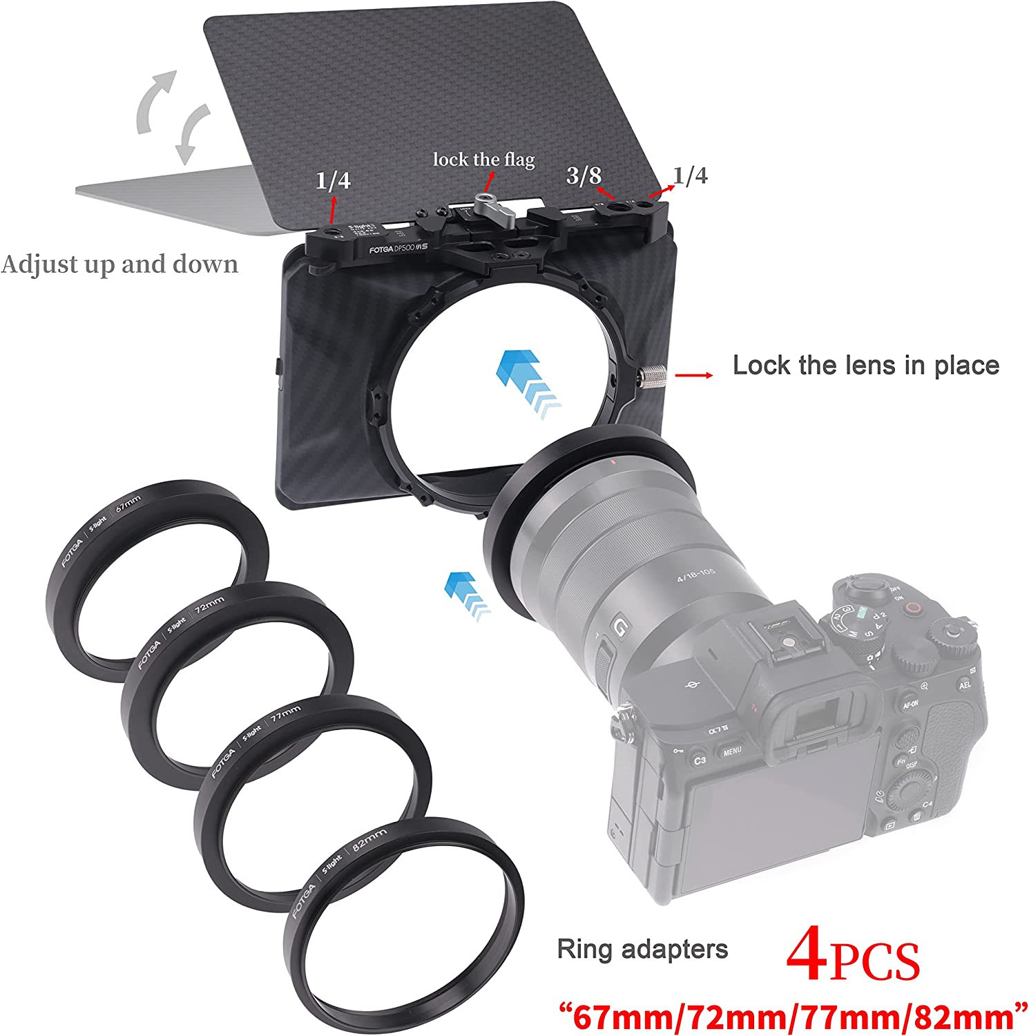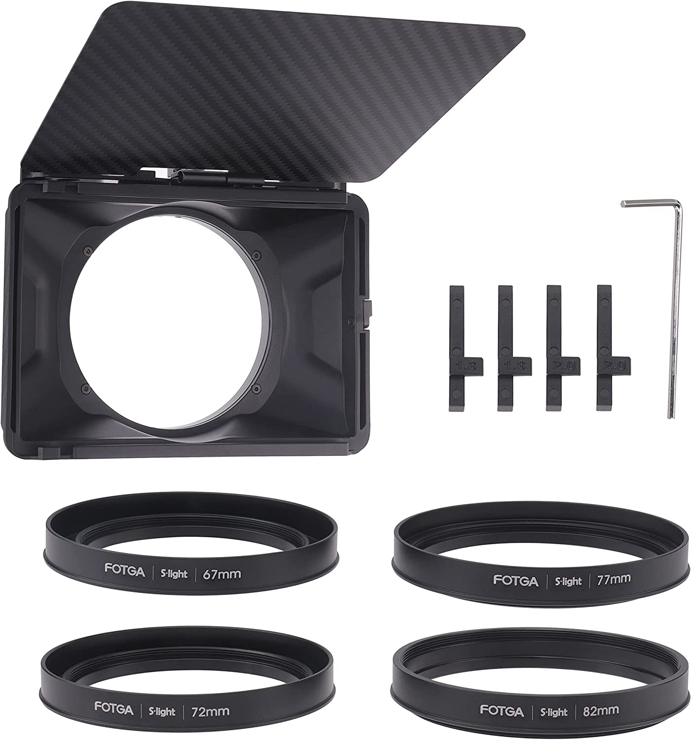 Fotga Mini Lightweight 4x4 4x5.65 Clip-on Lens Matte Box for DSLR Mirrorless Camera A7 A7R A7S II III IV Z6 Z7 II RP R3 R5C GH5 GH6 BMPCC 4K 6K,Compatible 52mm/55mm/58mm/62mm/67mm/72mm/77mm/82mm Lens