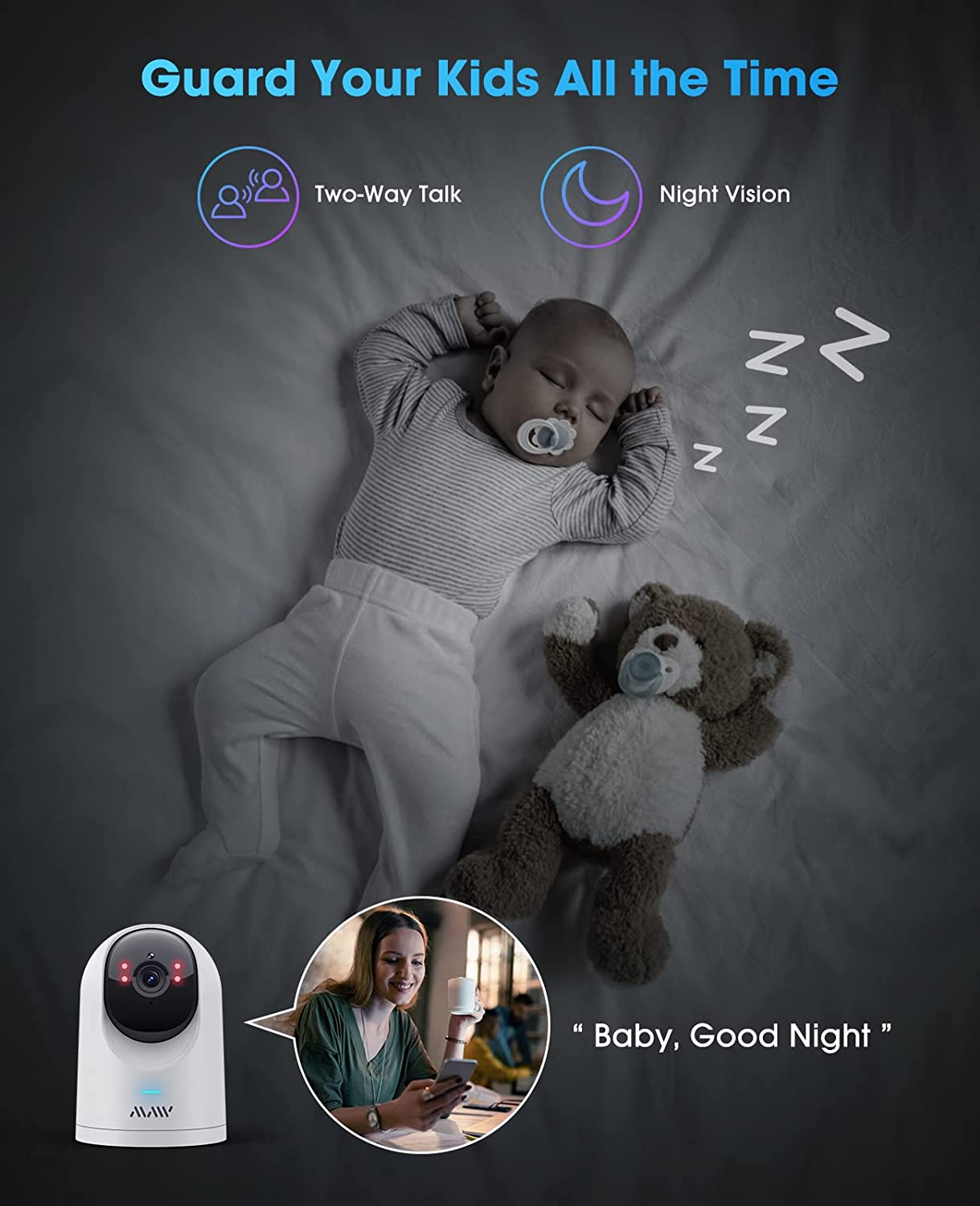 Security Camera for Baby Monitor, 2K Wi-Fi Cameras for Home Security, Pan/Tilt/Zoom Indoor Camera Wireless with Phone APP, 2-Way Audio, Motion Detection, Night Vision