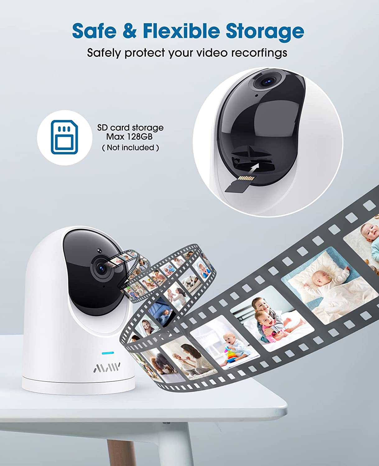• Safe & Privacy Mode: Supports up to 128 GB Micro SD(𝗡𝗼𝘁 𝗶𝗻𝗰𝗹𝘂𝗱𝗲𝗱)stores and records daily events, zero monthly fees, and the local Micro SD card works to prevent any internet hacking incidents. Support adding multiple cameras on the app and displaying 4 live videos. You could share your camera with friends and family for good moments. Moreover, You can turn on privacy mode, which can physically close the lens of the camera to further ensure the safety of privacy.