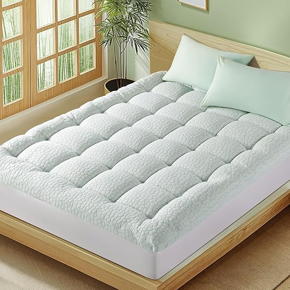Bambu_Viscose Mattress Topper Queen, 1200 GSM Cooling Mattress Topper, Extra Thick Pillow Top Mattress Topper for Back Pain, Soft Mattress Pad with 8"-21" Deep Pocket(Queen, 60"x80")