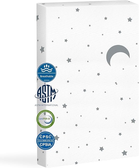 38"x26" Pack and Play Mattress for Baby and Toddlers - Breathable Pack N Play Mattresses Dual Sided Use Inner Core Thick Removable Cute Star Washable Cover