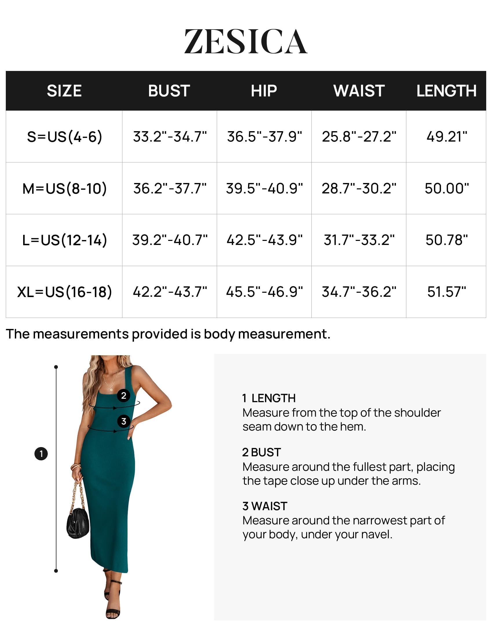 Details: Stylish and Comfortable: Designed for the upcoming 2024 spring season, this women's casual square neck bodycon midi dress combines fashion and comfort effortlessly, ensuring you look stunning while feeling at ease.Versatile and Chic: The sleeveless design and side slit details add a touch of sophistication to this dress, making it suitable for various occasions, from beach vacations to casual outings.Flattering Fit: The bodycon silhouette of this dress accentuates your curves, creating a flattering and feminine look that boosts your confidence.Knit Fabric: Crafted from a soft knit fabric, this dress offers excellent breathability and elasticity, allowing you to move freely and comfortably throughout the day.Easy to Style: This dress can be effortlessly paired with your favorite accessories and footwear, making it a versatile piece that can be dressed up or down according to the occasion.
