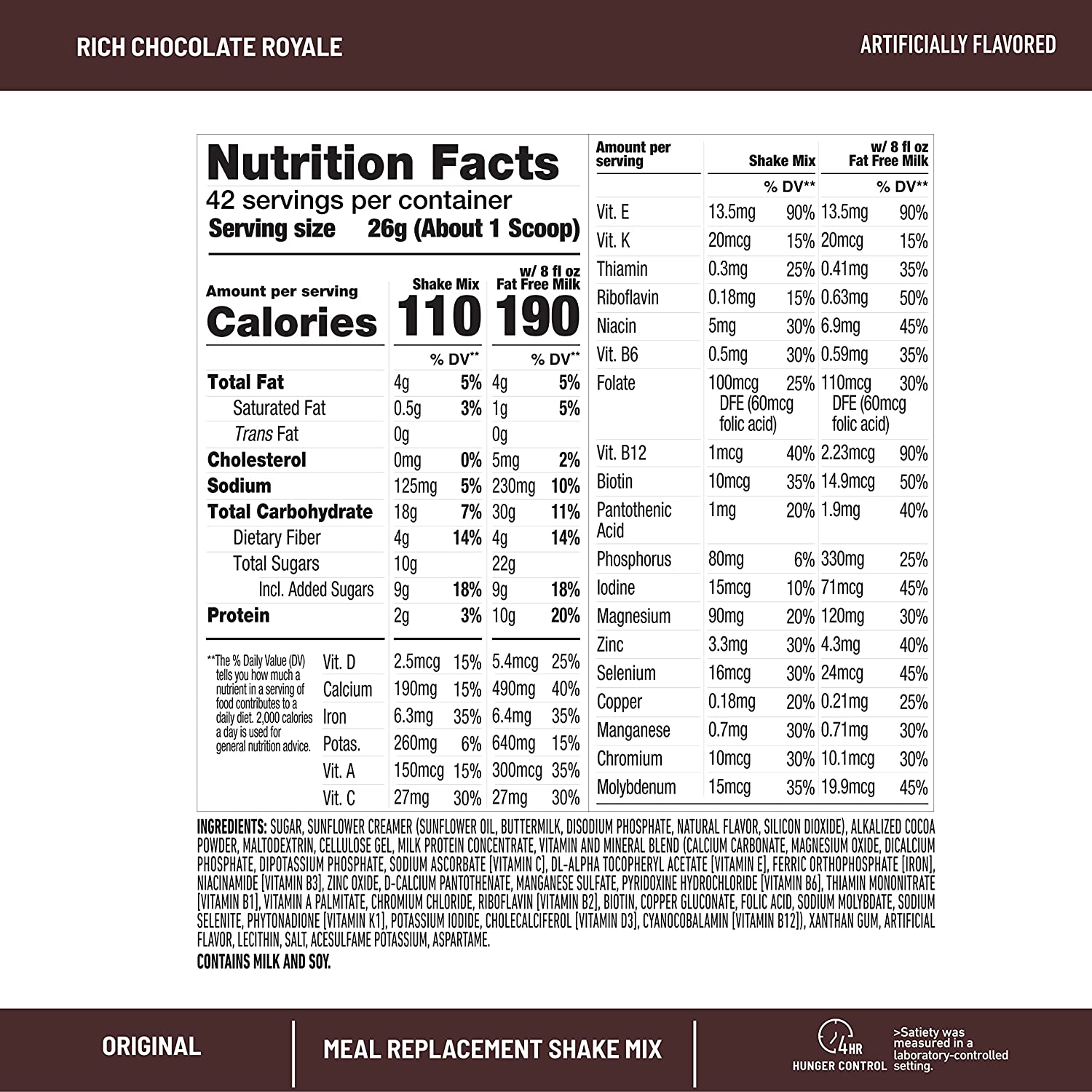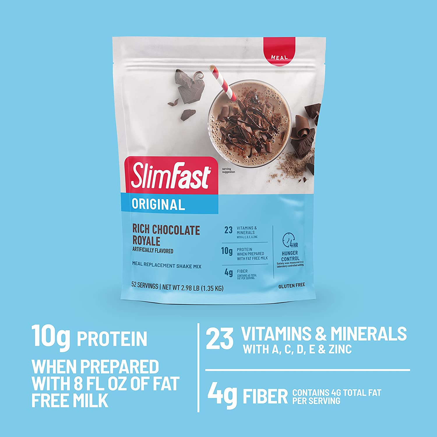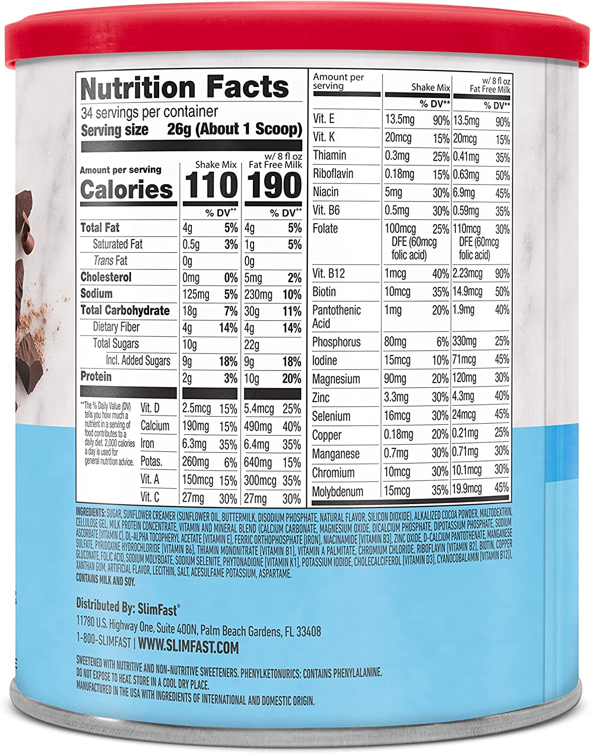 Losing weight is as easy as 1 – 2 – 3 when you activate the SlimFast Plan. One of the essential elements of this clinically proven weight loss program is replacing two daily meals with the great-tasting SlimFast Original Meal Replacement Shake Mix Powder. This meal replacement product that put SlimFast on the map is a great-tasting product that curbs hunger cravings for up to four hours. It contains 200 calories in each 8-fluid ounce serving, giving you plenty of energy to keep your body alert during the day. It is also packed with vitamins, protein, essential minerals, and fiber. This meal replacement shake mix by SlimFast contains 10 grams of protein along with 4 grams of fiber and 24 essential vitamins and minerals that help your body process and burn stored fat, making it easier for you to lose weight.