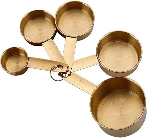 5-Piece Stainless Steel Measuring Cups Set - Dishwasher Safe Measurement Cups, Cute Measure Cup Set for Baking and Kitchen Use, Engraved Stainless Steel Measuring Cups´_‘Gold