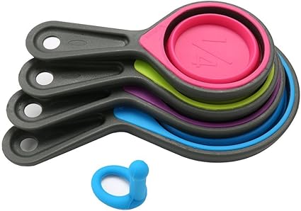 Collapsible Silicone Measuring Cups with 60ml/80ml/125ml/250ml - 4 Piece Set Kitchen Measuring Tools (4 Colors)