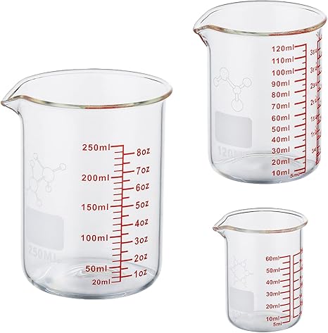 High Borosilicate Glass Measuring Cup Set-V-Shaped Spout´_‘Includes 60ml(2OZ), 120ml(4OZ), and 250ml(8OZ) Glass Measuring Beaker for Kitchen or Restaurant, Easy to Read