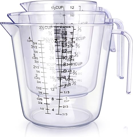 Measuring Cups Set, Liquid Measuring Cups For 3 For Kitchen - BPA Free Plastic Set with Spout Multiple Measurement Scales (Clear)