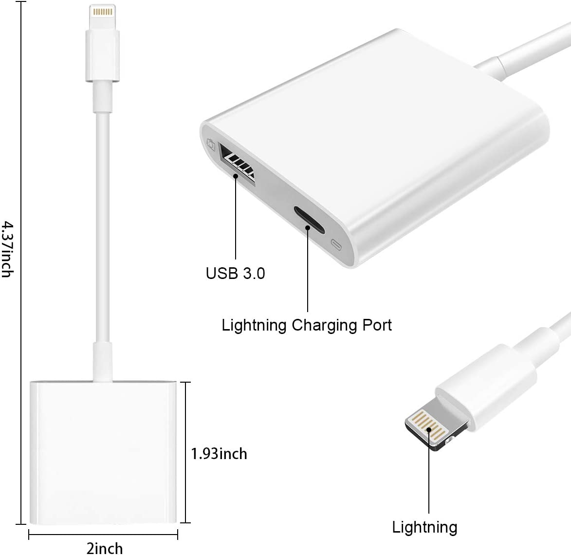 • PLUG AND PLAY: Easy to use, No need to take out the memory card from the camera, fast and stable connection. With the Lightning to USB Camera Adapter, you can transfer photos & videos from your high-resolution digital camera to your Phone and Pad directly. You can also share the human scenery along the way with your family or friends anytime, anywhere, and share the unforgettable moments you encounter.