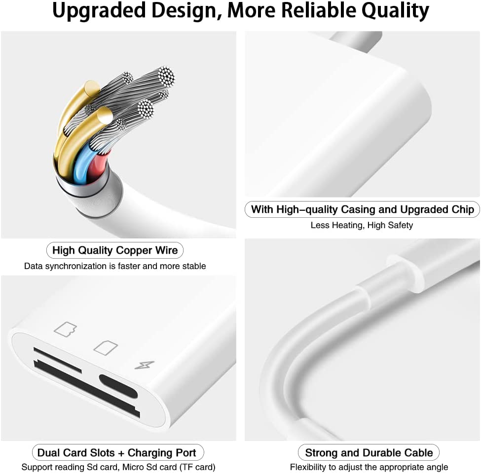 SD Card Reader for iPhone iPad,Micro SD Card Reader Memory Card Reader Plug and Play Trail Camera Viewer SD Card Adapter,Simultaneous Charging and Card Reading Micro SD Card Adapter