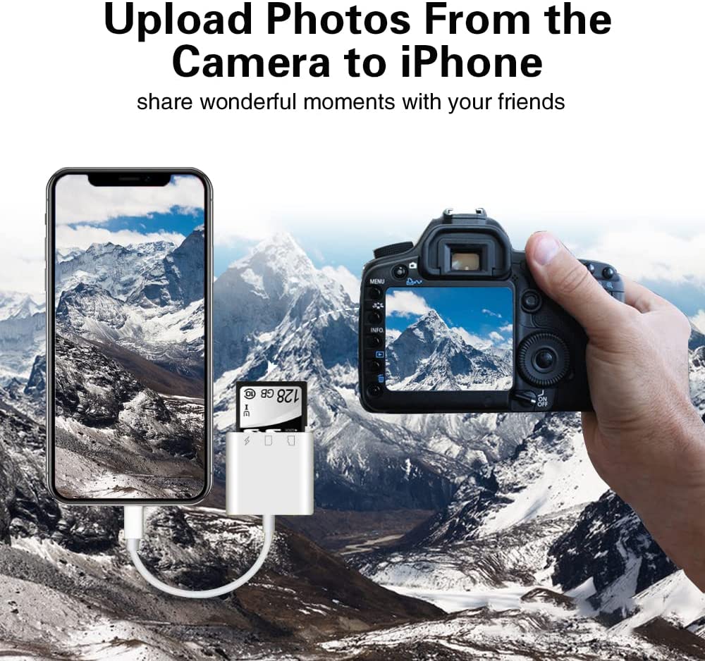 • Fast Data Transfer Speed: The sd card reader for iphone transfers photos or videos from the camera or memory card to the iphone or ipad at a speed of 20MB/s ~ 30MB/s.for iphone and ipad users, this is the best way to copy photos or videos from sd card to iPhone or ipad, you can save a lot of time to do more meaningful things.