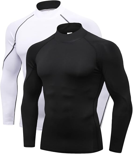 2/3 Pack Men's Compression Shirts Long Sleeve Workout Shirts Mock Turtleneck Athletic Base Layer Active Undershirts Tops
