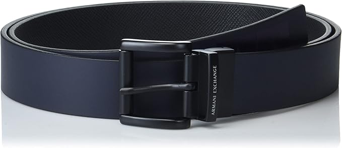 A | X ARMANI EXCHANGE Men's Box Logo Print Reverisble Leather Belt, Blue/Black, OS