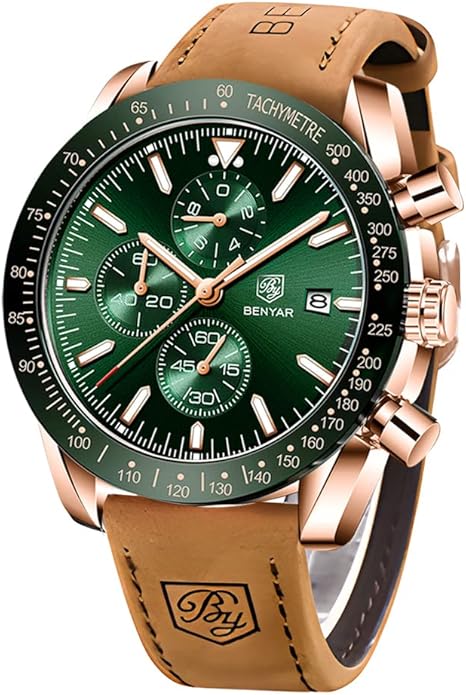 BENYAR Mens Watches Quartz Chronograph Business Luxury Brand Waterproof Wristwatches Fashion Brown Leather Watches for Men