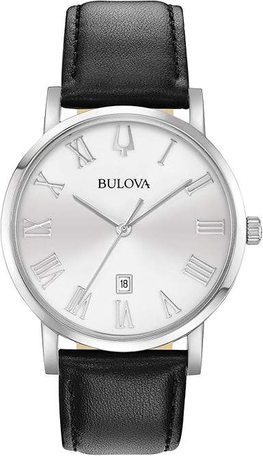 Bulova Men's Classic 3-Hand Calendar Date Quartz Leather Strap Watch, Roman Numeral Markers, 40mm
