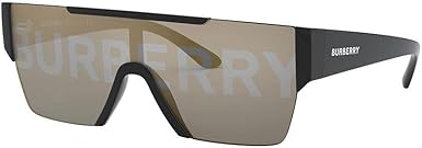 Burberry BE 4291 3001/G Black Plastic Rectangle Sunglasses Gold Mirror Lens