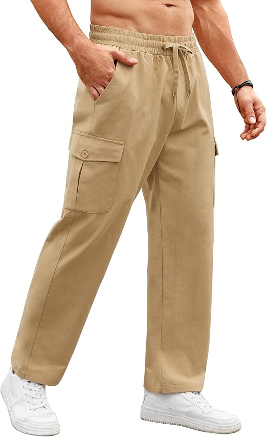 COOFANDY Mens Casual Cargo Pants Relaxed Fit Outdoor Hiking Pants Cotton Drawstring Sweatpants with Pockets