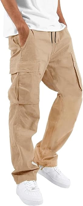 HUNGSON Mens Cargo Pants Casual Hiking Pants Joggers Athletic Pants Cotton Loose Straight Sweatpants for Men