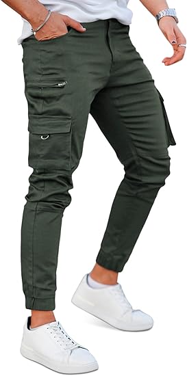 GINGTTO Mens Cargo Jogger Pants Slim Fit Stretch Zipper Pockets Thick Cotton Pants for Men