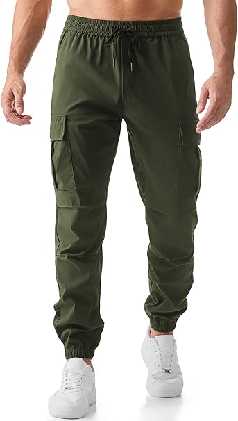 JMIERR Mens Casual Cargo Joggers Pants Elastic Waist Drawstring Stretch Relaxed Fit Work Pants Tapered Sweatpants
